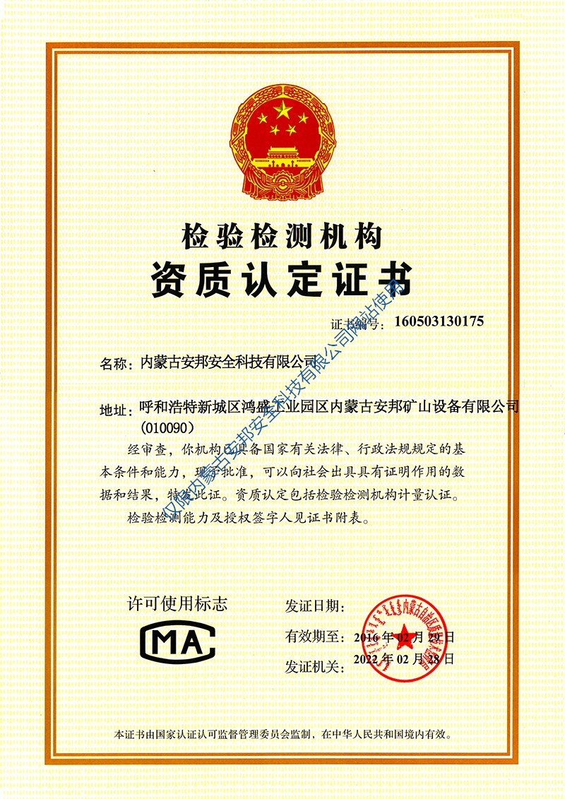 檢測檢驗機構(gòu)資質(zhì)認定證書