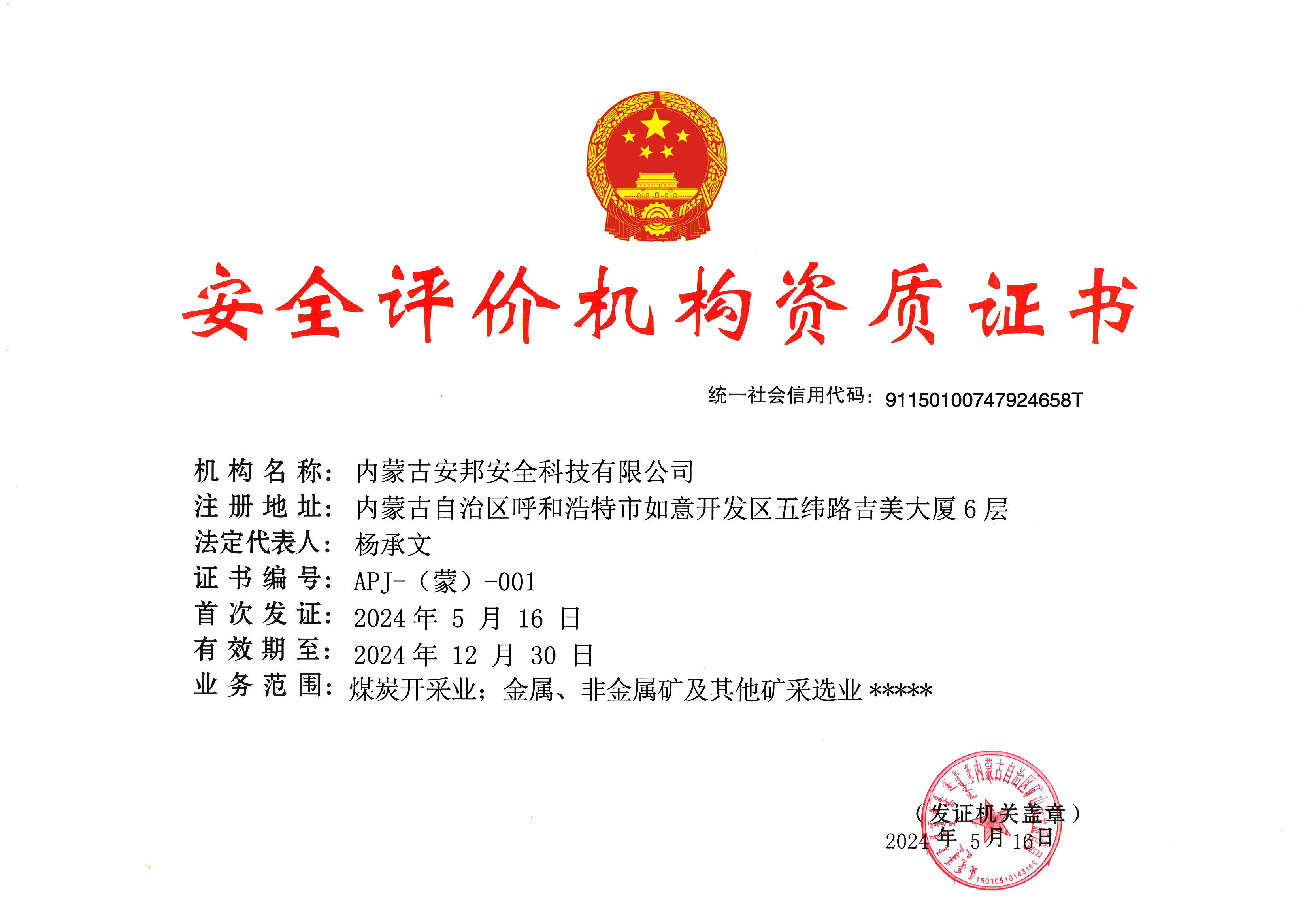 安全評(píng)價(jià)機(jī)構(gòu)資質(zhì)證書(礦山)