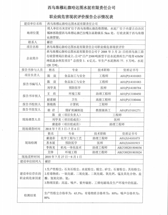 下一篇: 西烏珠穆沁旗哈達(dá)圖水泥有限責(zé)任公司職業(yè)病危害現(xiàn)狀評(píng)價(jià)
