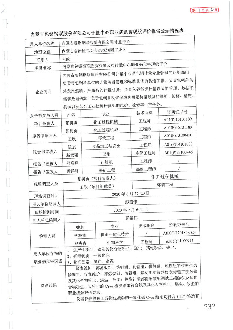 下一篇: 內(nèi)蒙古包鋼鋼聯(lián)股份有限公司鋼管公司職業(yè)病危害現(xiàn)狀評(píng)價(jià)