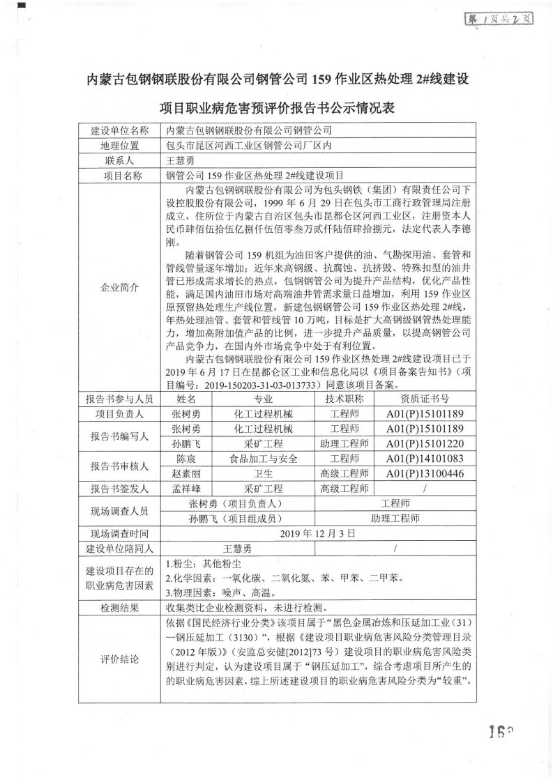 下一篇: 內(nèi)蒙古包鋼鋼聯(lián)股份有限公司鋼管公司管加工新增管體車(chē)絲大線(xiàn)項(xiàng)目職業(yè)病危害預(yù)評(píng)價(jià)