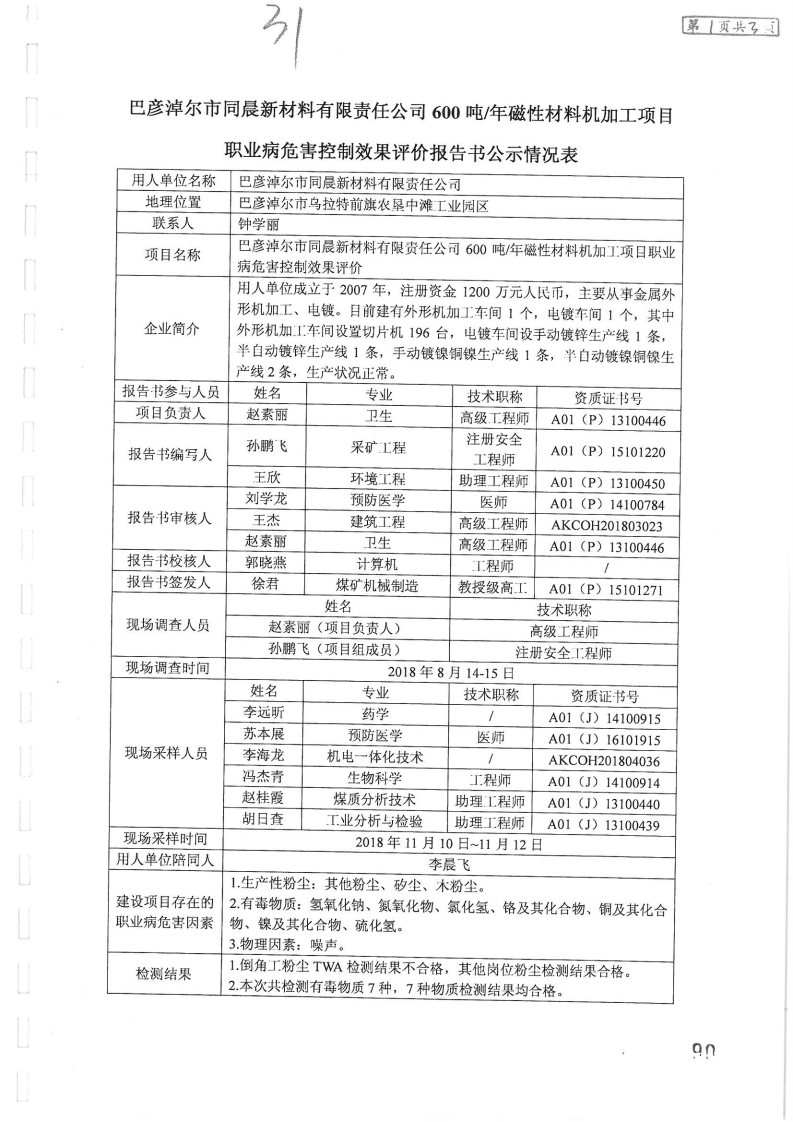安全評(píng)價(jià)項(xiàng)目公示 職業(yè)衛(wèi)生項(xiàng)目公示