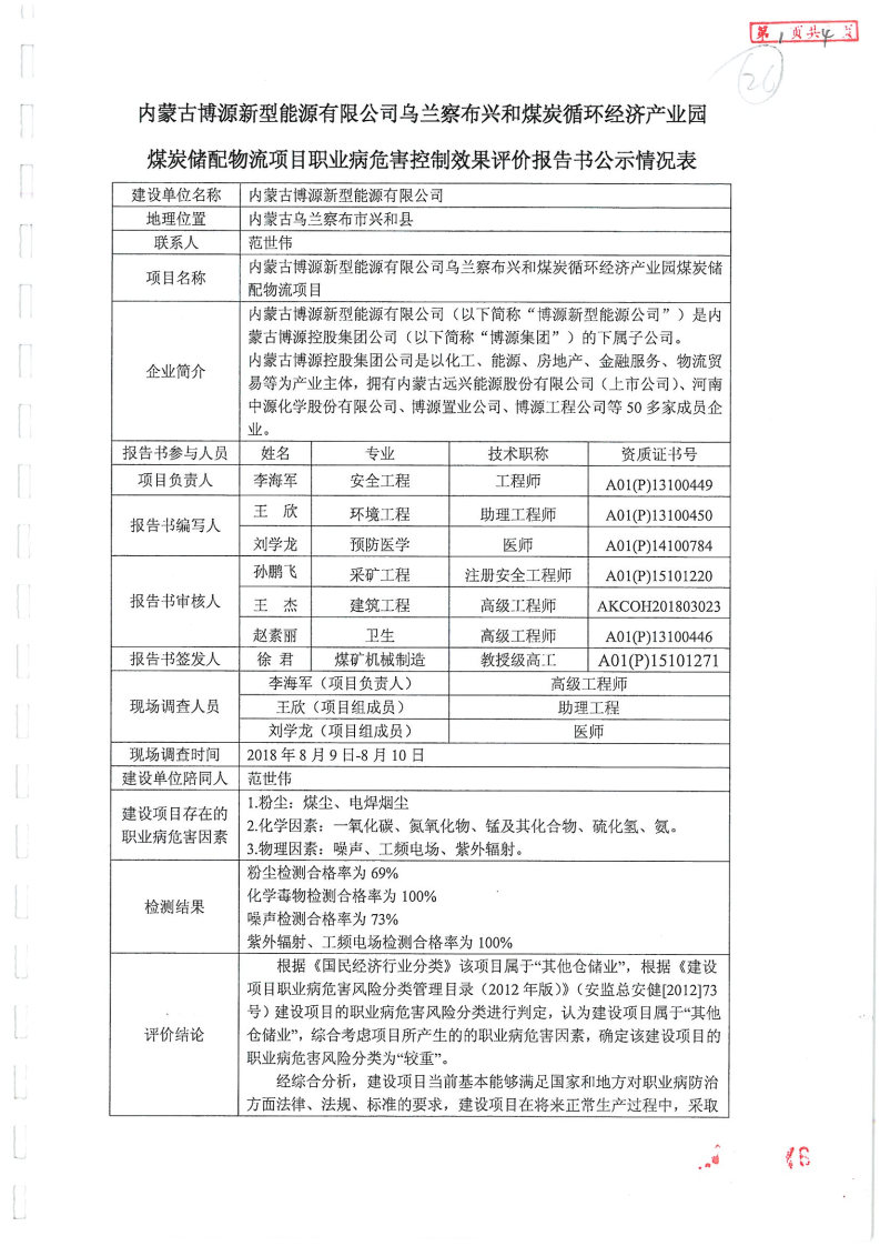 安全評價項目公示 職業(yè)衛(wèi)生項目公示