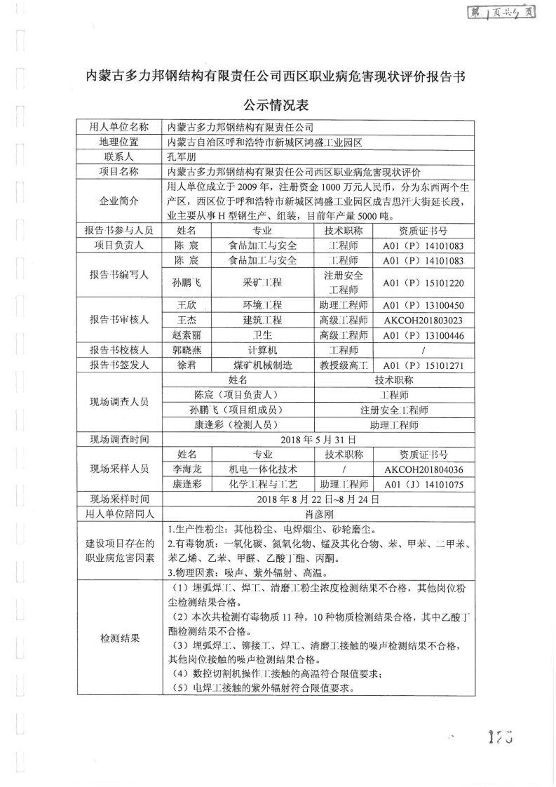 上一篇:內蒙古多力邦鋼結構有限責任公司東區(qū)職業(yè)病危害現(xiàn)狀評價
