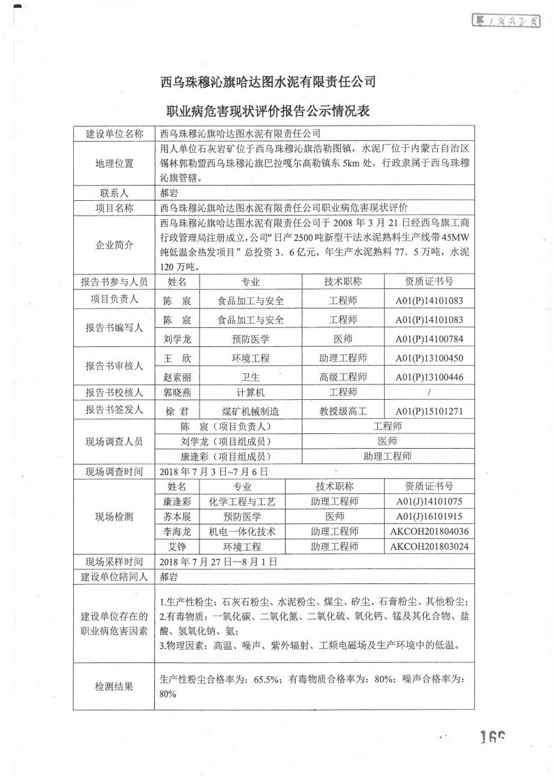 上一篇:西烏珠穆沁旗哈達圖水泥有限責(zé)任公司職業(yè)病危害現(xiàn)狀評價報告
