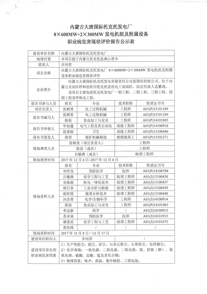 安全評(píng)價(jià)項(xiàng)目公示 職業(yè)衛(wèi)生項(xiàng)目公示