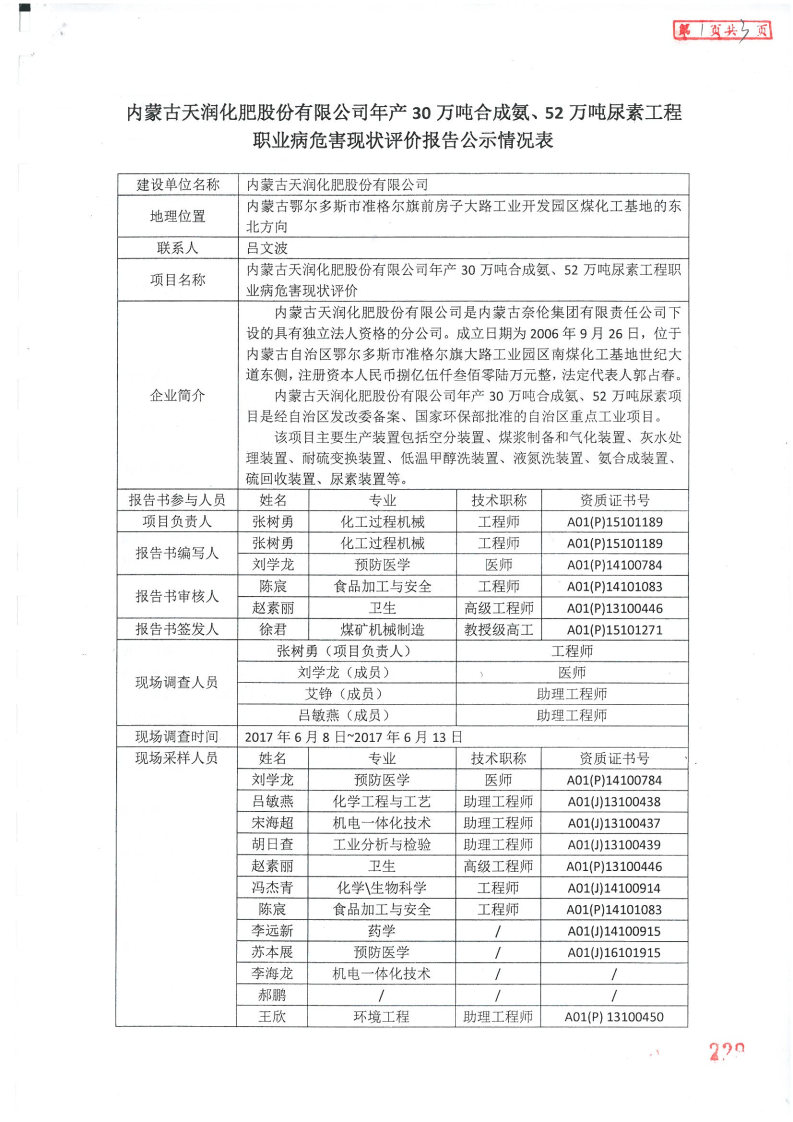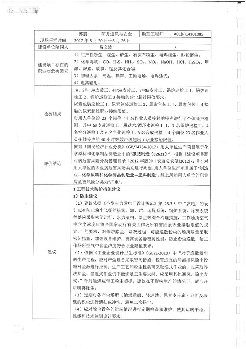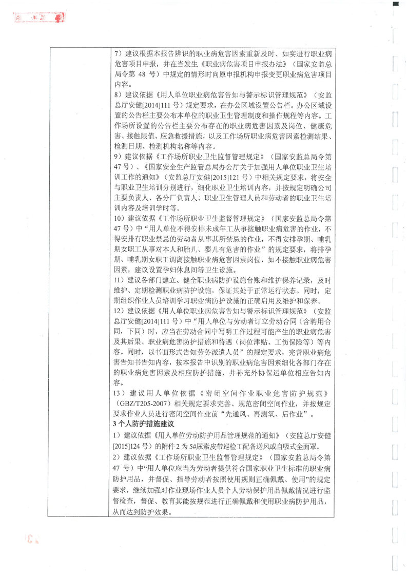 上一篇:內(nèi)蒙古黃陶勒蓋煤炭有限責(zé)任公司世林化工分公司4×30萬(wàn)噸年(一期30萬(wàn)噸年)煤質(zhì)甲醇項(xiàng)目職業(yè)病危害控制效果評(píng)價(jià)