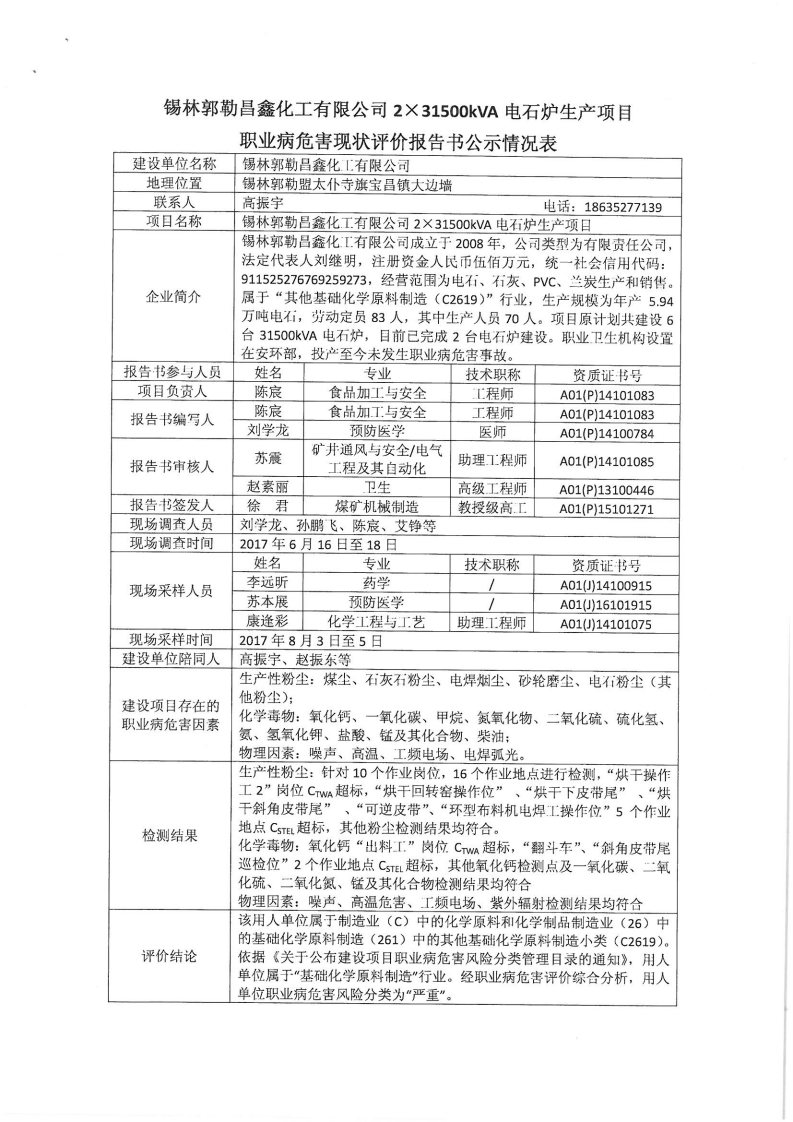 安全評價項目公示 職業(yè)衛(wèi)生項目公示
