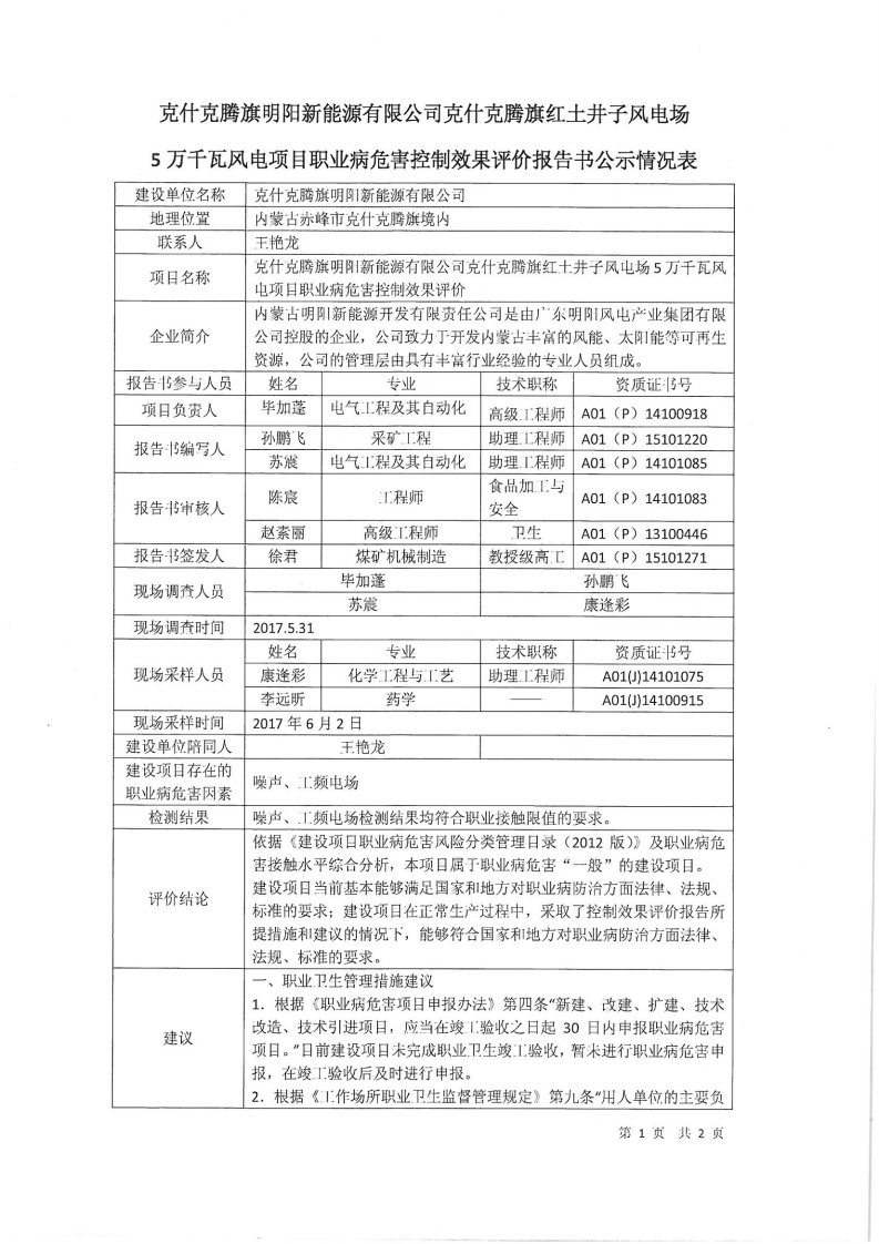 下一篇: 烏拉特中旗魯能風電有限責任公司 巴音杭蓋1號風電場一期100MW風電項目職業(yè)病危害控制效果評價
