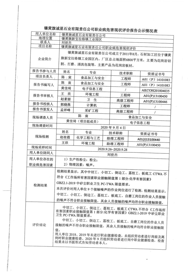 安全評價項目公示 職業(yè)衛(wèi)生項目公示