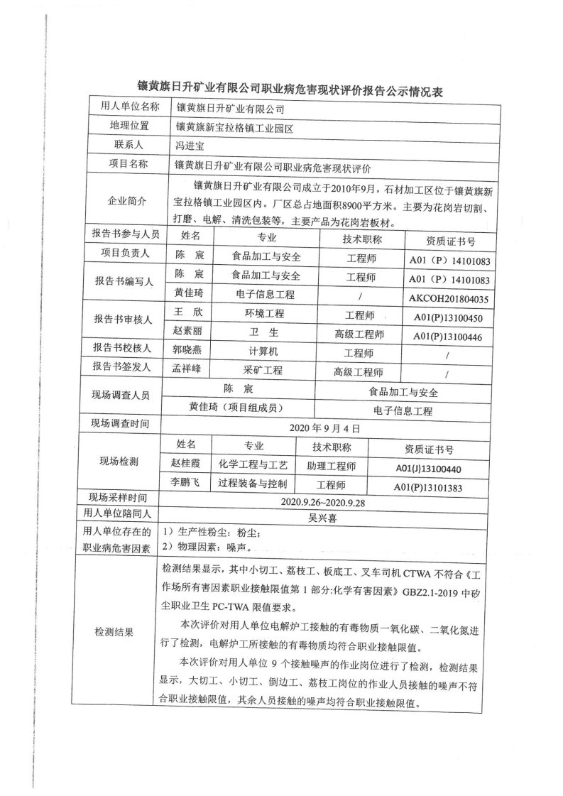 安全評價項目公示 職業(yè)衛(wèi)生項目公示
