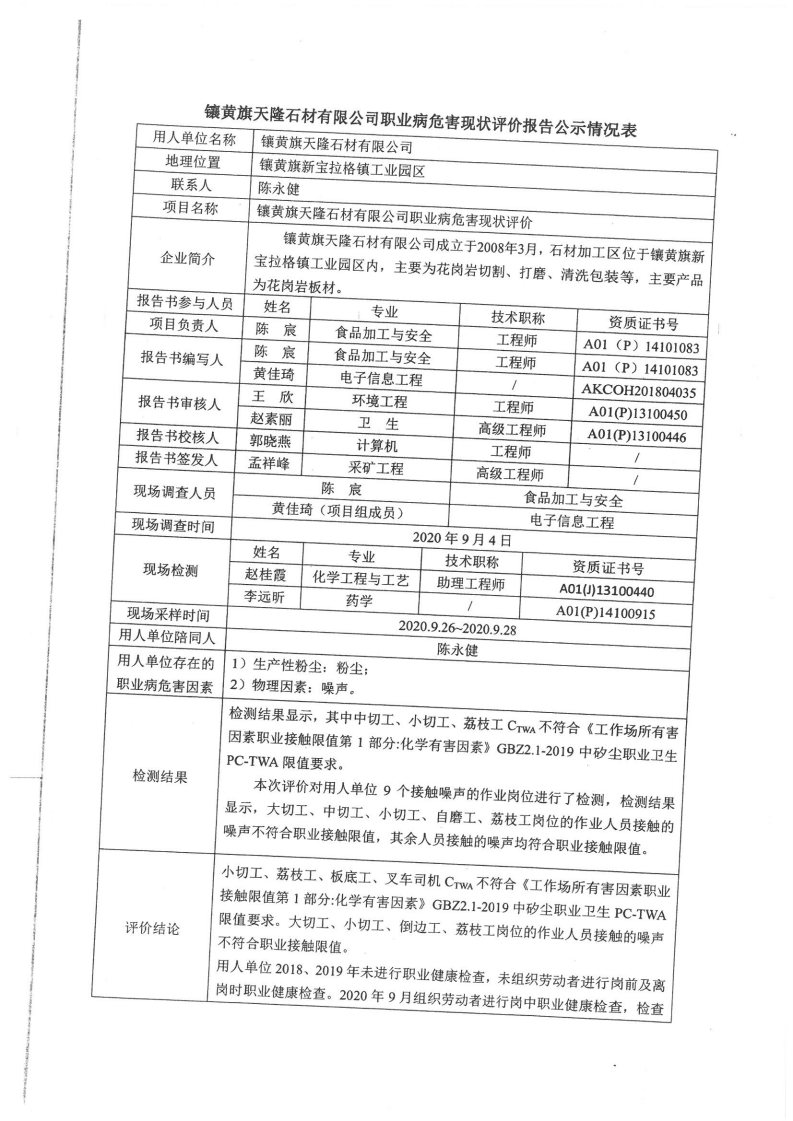 安全評價項目公示 職業(yè)衛(wèi)生項目公示