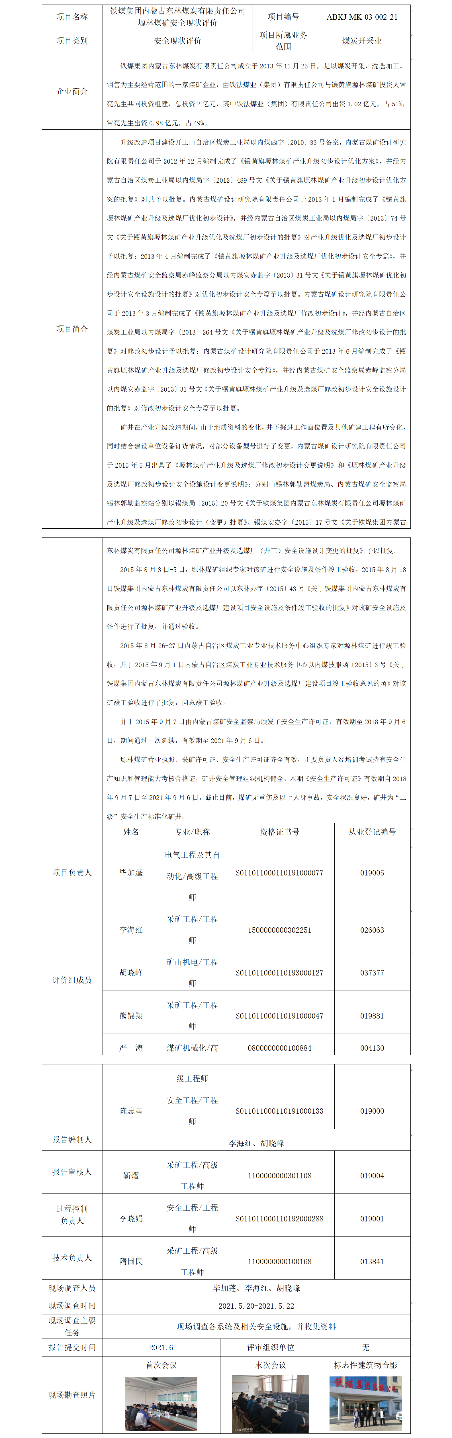 上一篇:國能蒙西煤化工股份有限公司(原神華蒙西煤化股份有限公司)棋盤井煤礦產(chǎn)業(yè)升級項目(東區(qū))建設項目安全驗收評價