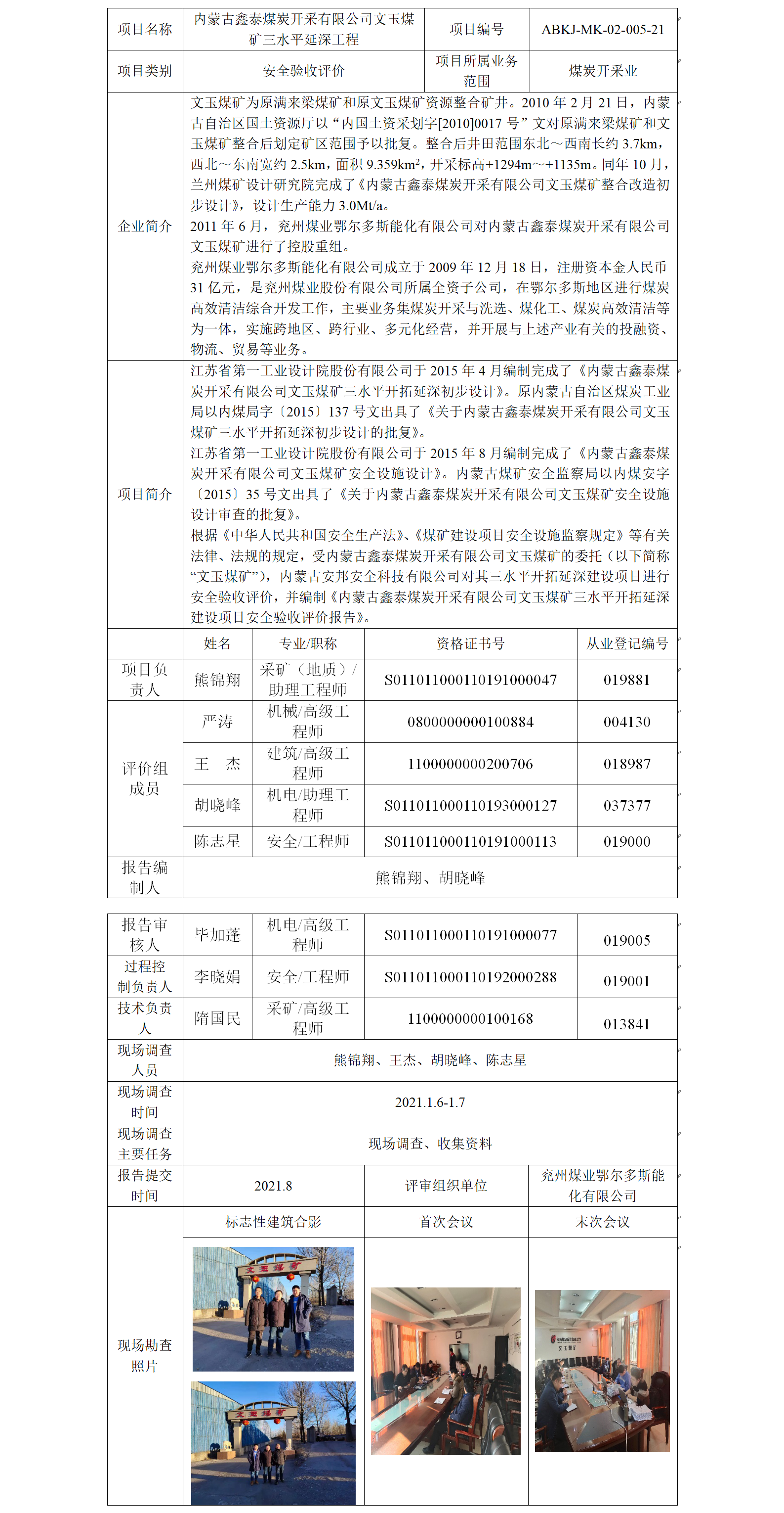 上一篇:內(nèi)蒙古鑫泰煤炭開采有限公司文玉煤礦三水平開拓延深建設(shè)項目 安全驗收評價報告