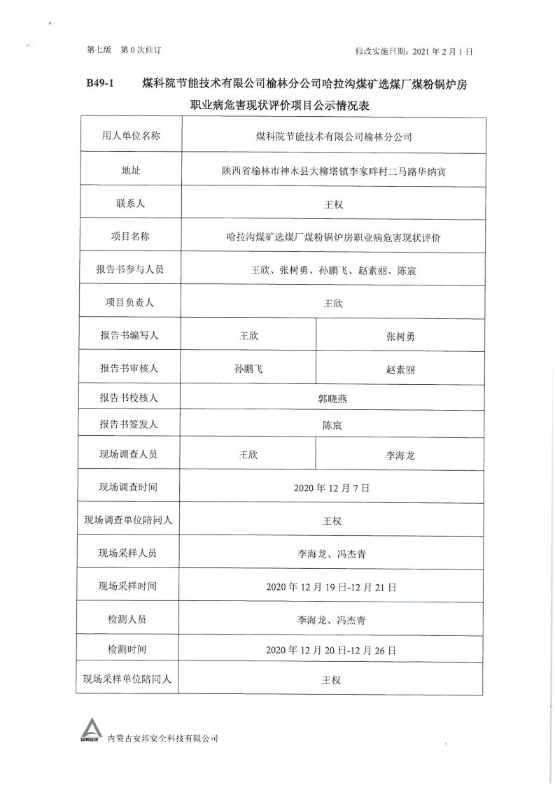 安全評價項目公示 職業(yè)衛(wèi)生項目公示